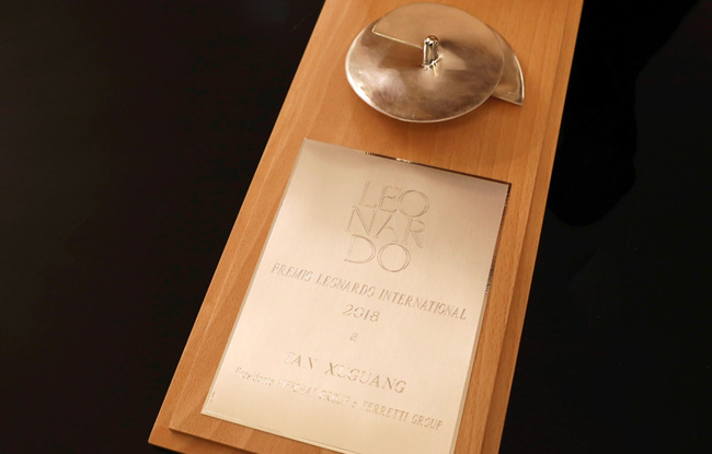 莱昂纳多奖被誉为“意大利企业的奥斯卡”,旨在表彰在激烈竞争的国际市场上取得较好业绩、提高“意大利制造”产品国际知名度的企业和个人,是意大利最具权威、影响力最大的“经济年度人物奖”,每年颁发一次,该奖项在国际上有重要影响。其中,“莱昂纳多国际奖”主要授予在双边经济、文化及技术领域交流等方面做出重大贡献的国际人士,奖项获得者被称为“意大利全球形象大使”。